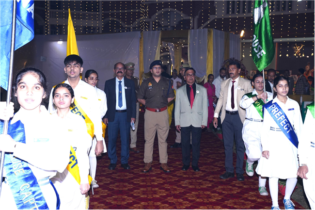The Chief Guest for the occasion was Hon’ble Mr. Vikram Dahiya, IPS, Additional Superintendent of Police, Pilibhit, a distinguished officer known for his exemplary service, inspiring journey, and commitment to the nation. The event was graced by Dr. Sanjeev Agarwal, Director, Mr. Ujjawal Agarwal, Executive Director, Mr. N.C. Pathak, Principal, Mrs. Anju Saxena, Vice-Principal, and Mrs. Neena Mehrotra, Headmistress**, along with parents, guests, and well-wishers.
