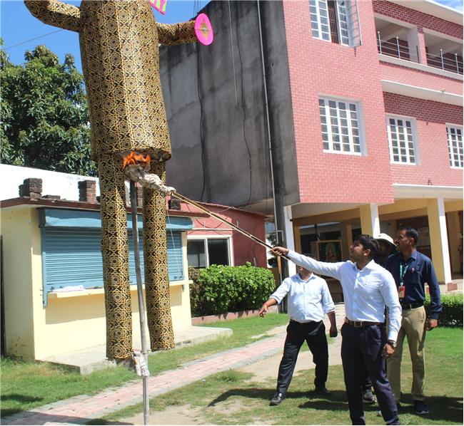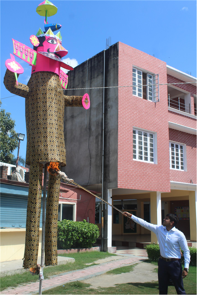 Little Angels School celebrated Dussehra with great enthusiasm. As per tradition, an effigy of Ravan was prepared and set ablaze amidst the bursting of crackers, which filled the atmosphere with excitement and joy. Children thoroughly enjoyed witnessing the symbolic act, while teachers explained the significance of the festival and the story behind the victory of good over evil. The celebration ended on a cheerful note, leaving a memorable impression on everyone present.